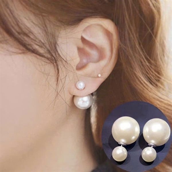Bông tai hạt trai mẫu hạt tròn lớn nhỏ xỏ khuyên 8mm + 13mm