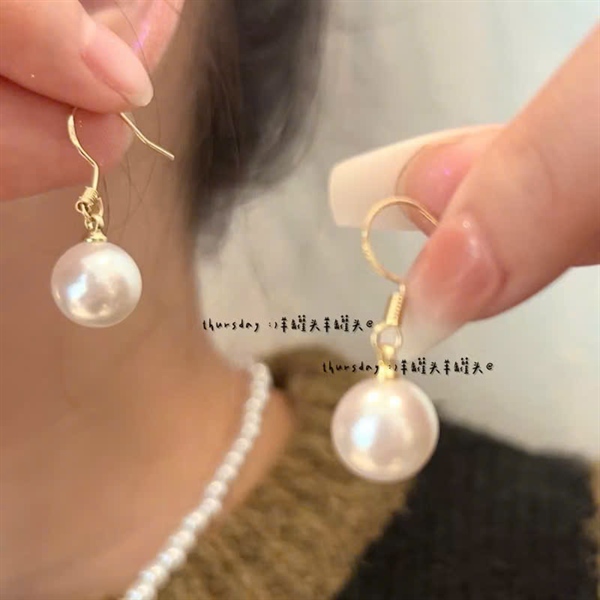 Bông tai hạt trai mẫu tròn nhỏ xỏ khuyên móc màu vàng 11mm