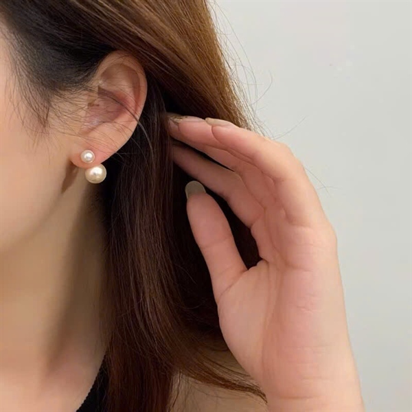 Bông tai hạt trai mẫu hạt lớn nhỏ mẫu xỏ khuyên 8mm + 11mm