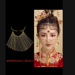 Mạng che mặt xích đính đá đỏ tua rua phong cách cổ trang
